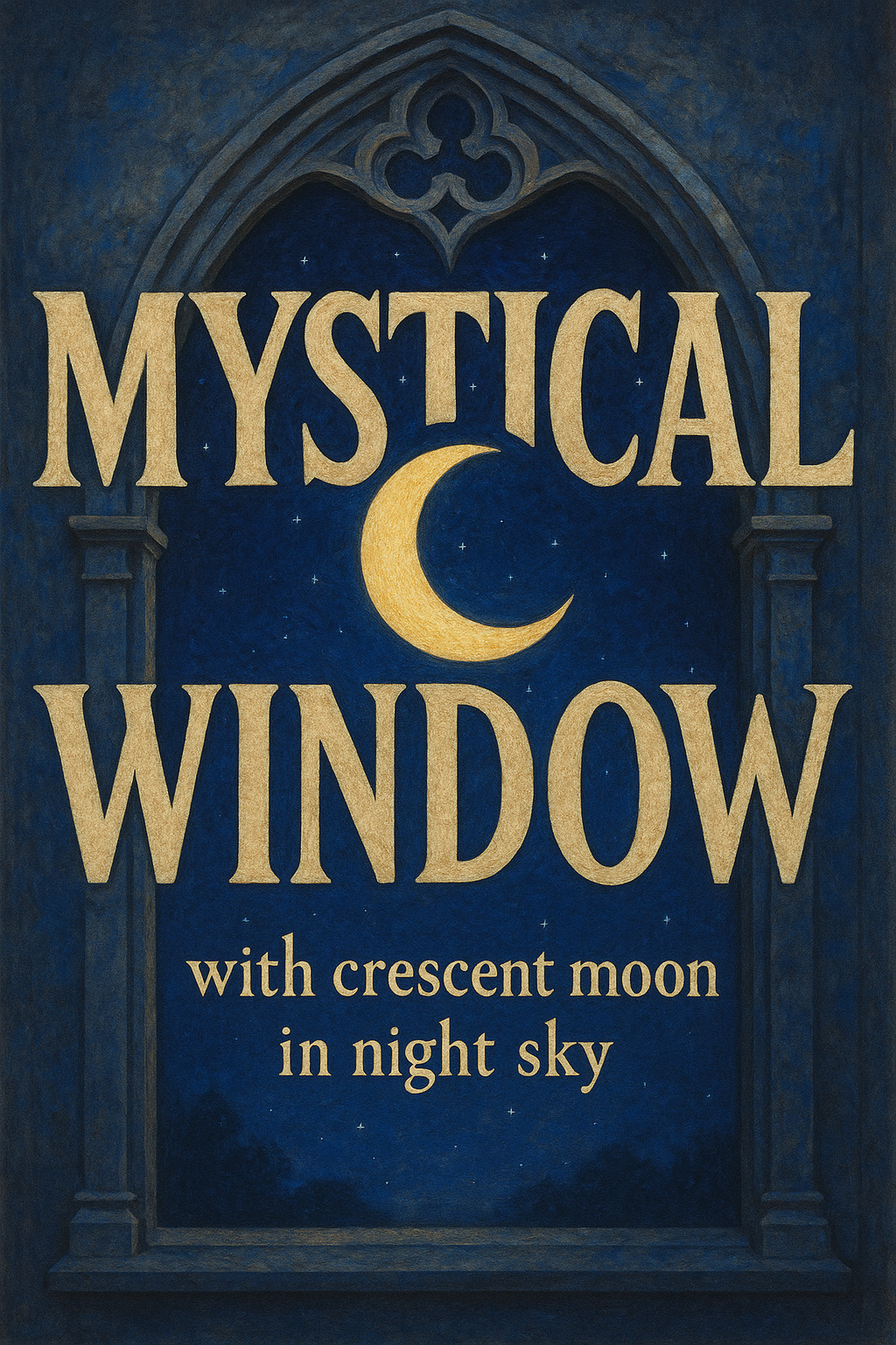 Artistic Illustration of a Mystical Window with Crescent Moon