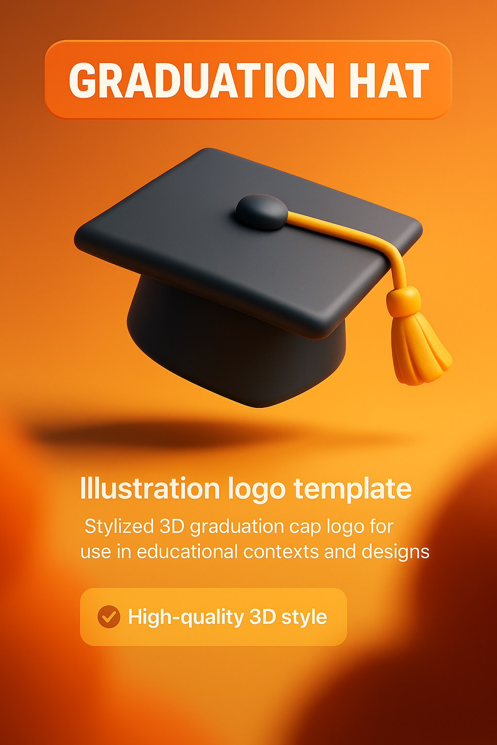 /Collection: /by davooda/Type: PNG/A stylized 3D illustration of a graduation cap, designed for use in educational contexts. The vibrant background enhances its visual appeal, making it ideal for logos.