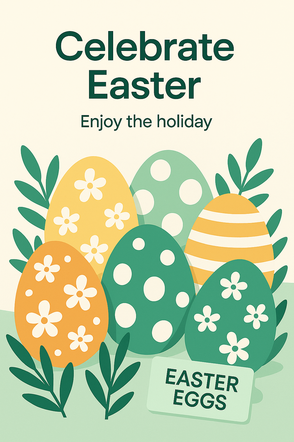 Easter Celebration Promotional Graphic Featuring Colorful Eggs