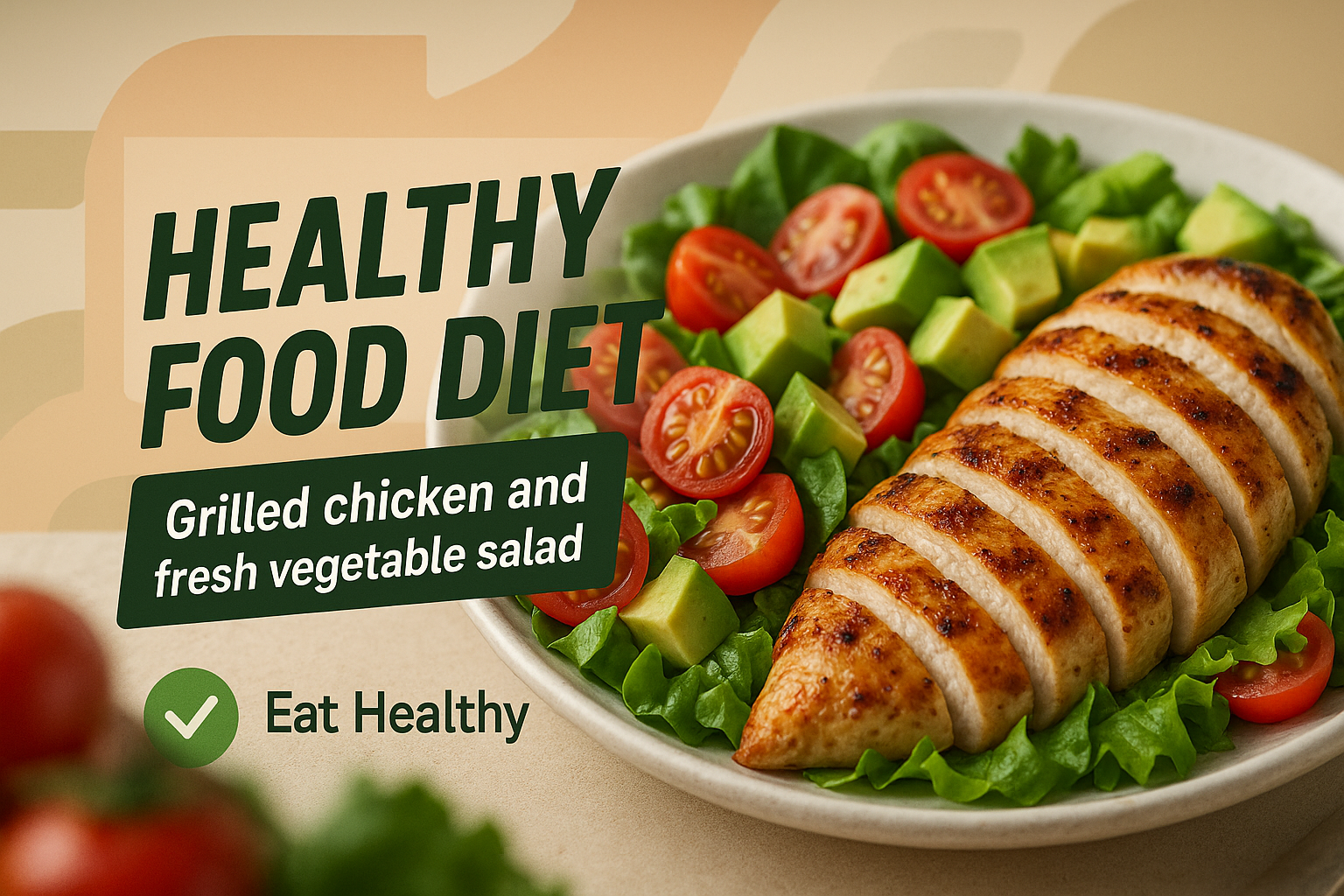 Healthy Food Diet Presentation Featuring Grilled Chicken and Salad