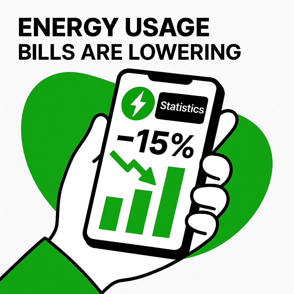 /Collection: /by davooda/Type: PNG/Engaging infographic illustrating energy usage reduction statistics with a modern design, ideal for educational or promotional content related to energy efficiency.