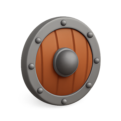 A 3D-rendered shield icon featuring wooden texture and metallic details, ideal for gaming or medieval-themed designs.