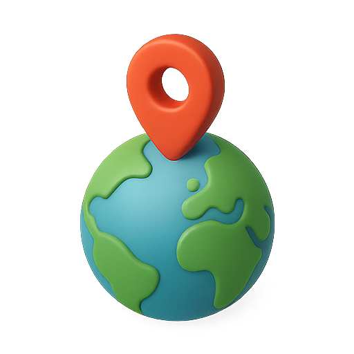 A colorful 3D illustration depicting a globe with a prominent location pin, ideal for representing global navigation, travel, or mapping services.