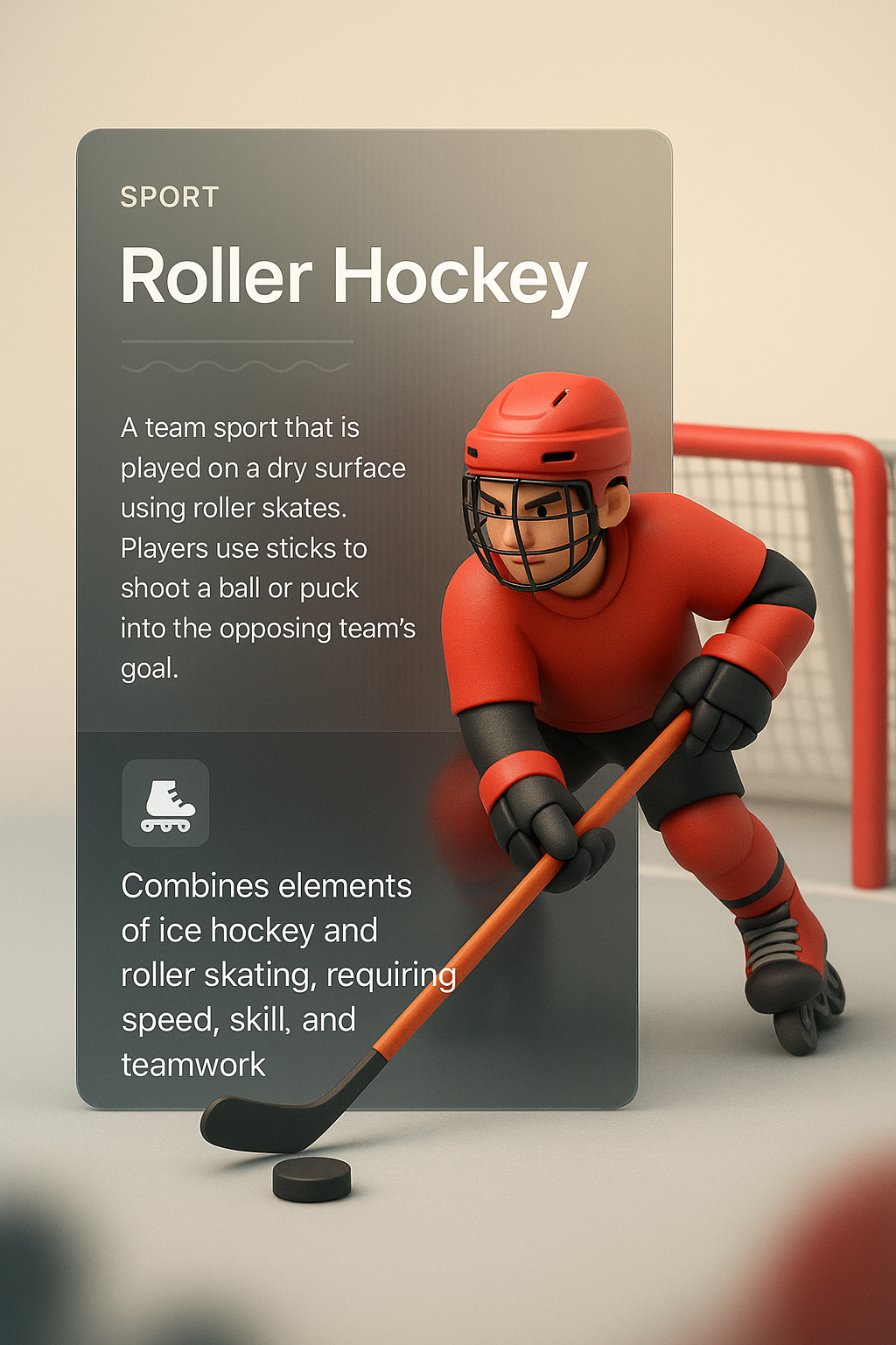 /Collection: /by davooda/Type: PNG/A dynamic 3D illustration depicting a roller hockey player in action, integrated with a sleek informational block. The design features a gradient background and translucent elements for a modern look.