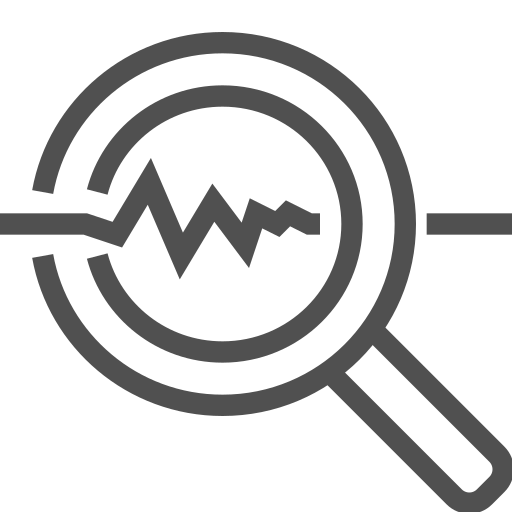 outline simple icon: analytics, chart, data analysis, magnifying glass, search