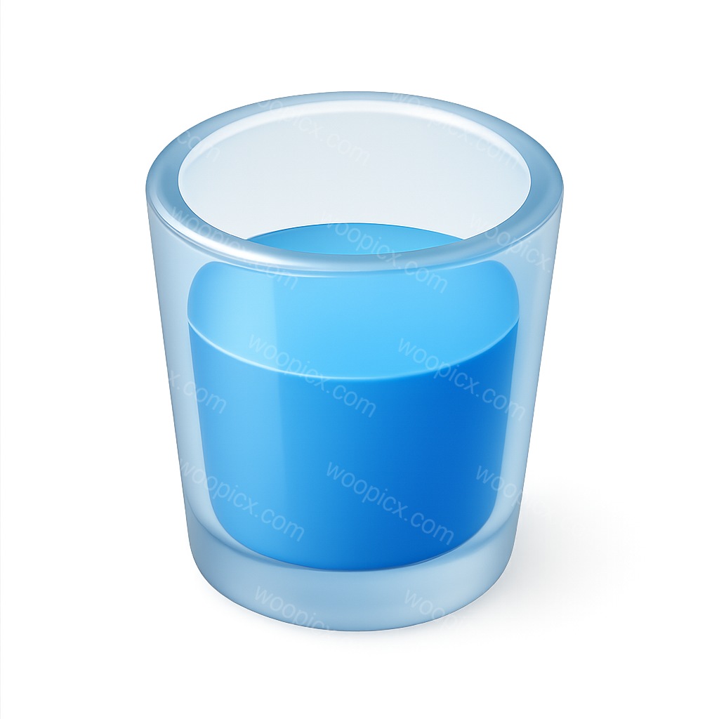 A visually appealing 3D glass icon featuring a blue liquid. The glass has a transparent quality and is presented in a three-quarter view, enhancing its isometric and volumetric feel.