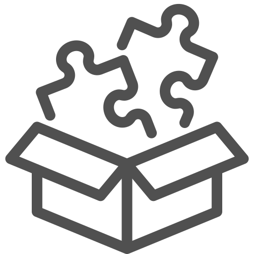 outline simple icon: abstraction, assembly, box, package, puzzle