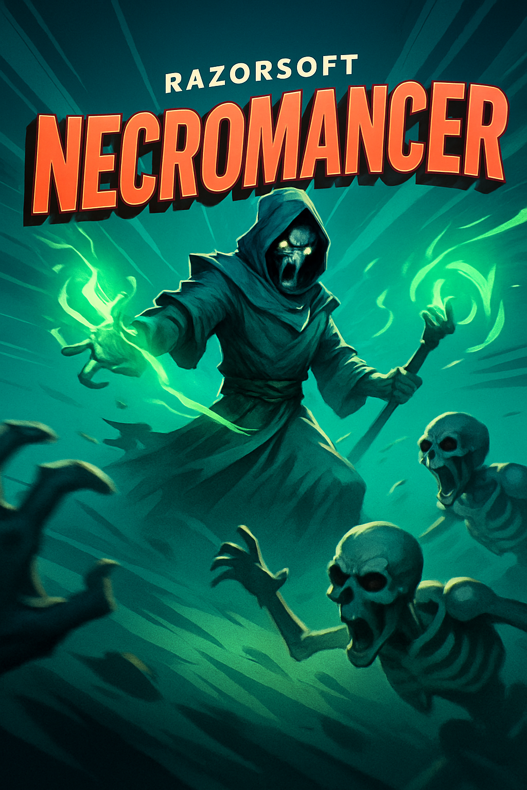 Dynamic Necromancer Illustration with Skulls and Magic