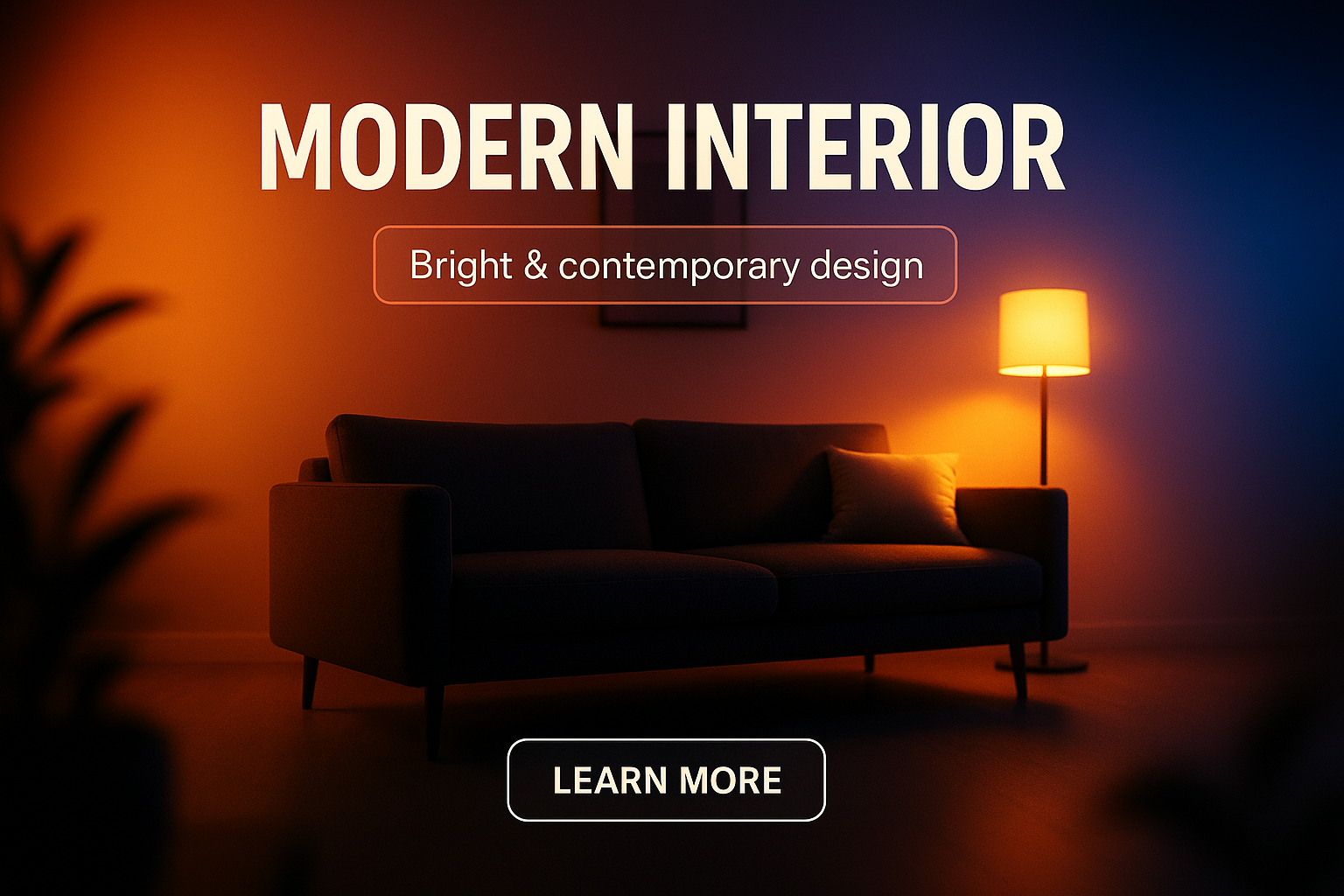 /Collection: /by davooda/Type: PNG/This is a promotional graphic showcasing a modern interior with a vibrant color scheme. Ideal for home decor or design services, it attracts audiences interested in contemporary aesthetics.