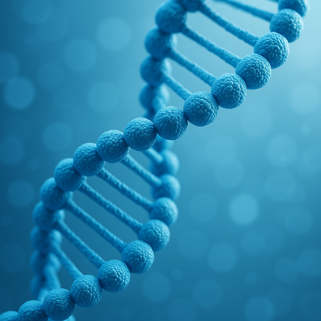 3D illustration of a DNA double helix with a smooth, modern design. The blue color scheme and bokeh background create a scientific and engaging visual suitable for educational or research contexts.
