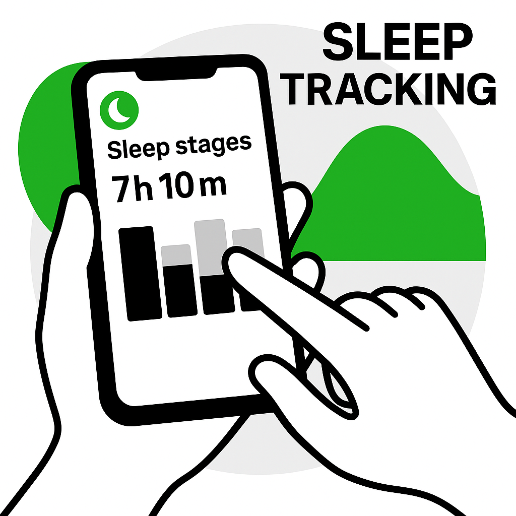 /Collection: /by davooda/Type: PNG/Stylized illustration depicting a mobile phone displaying sleep tracking data, ideal for health and wellness applications targeting users interested in sleep analysis.
