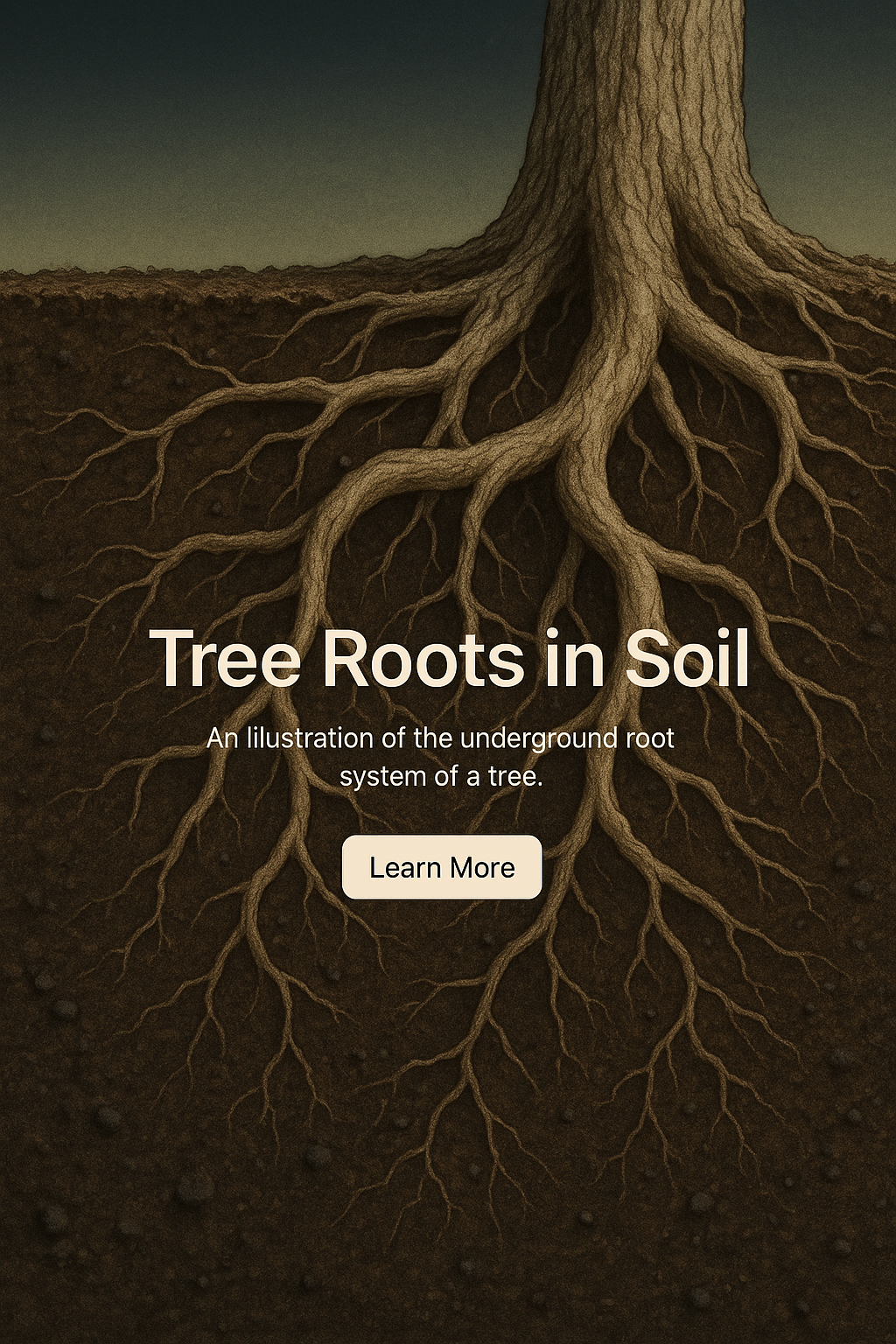 Detailed Illustration of Tree Roots in Soil with Action Button