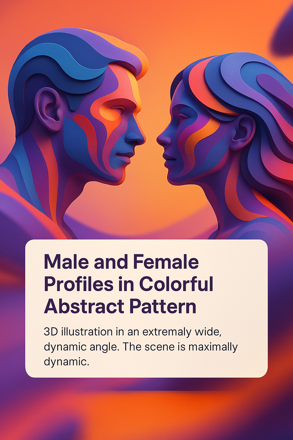 Dynamic 3D Abstract Portraits of Male and Female Profiles