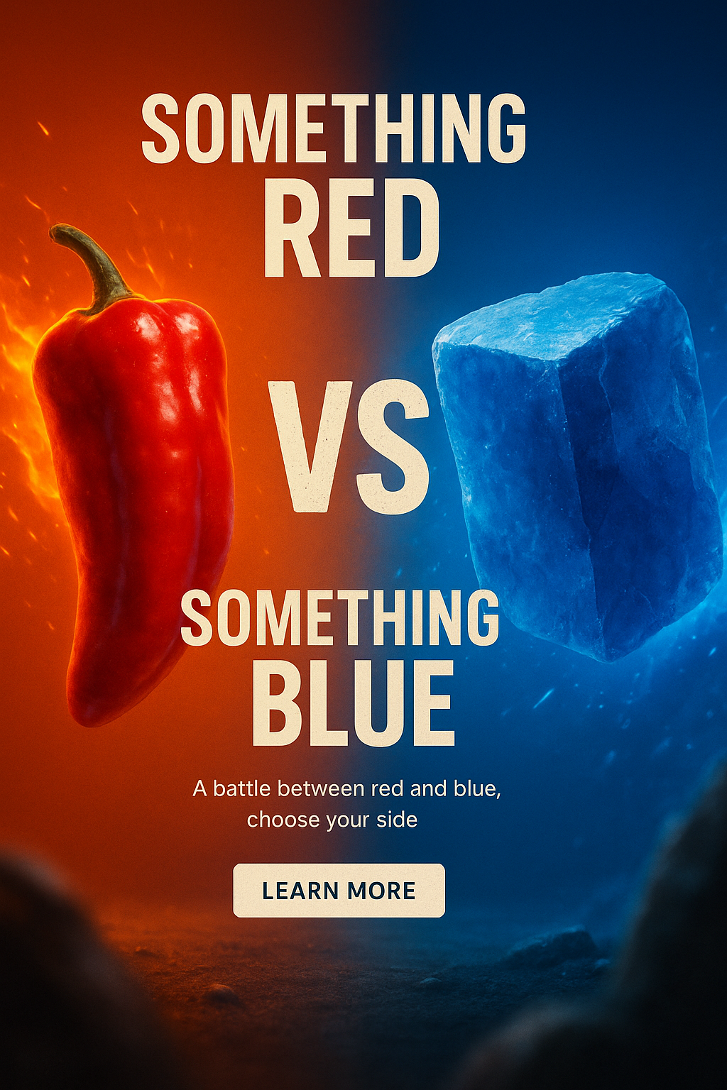 A dynamic graphic showcasing a red pepper and a blue ice cube, symbolizing a playful competition. Ideal for social media engagement and promotional content.