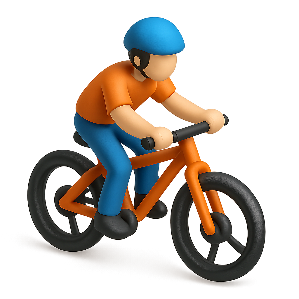 A vibrant 3D icon depicting a person riding a mountain bike, featuring a simple design with a transparent background and a three-quarter isometric view.