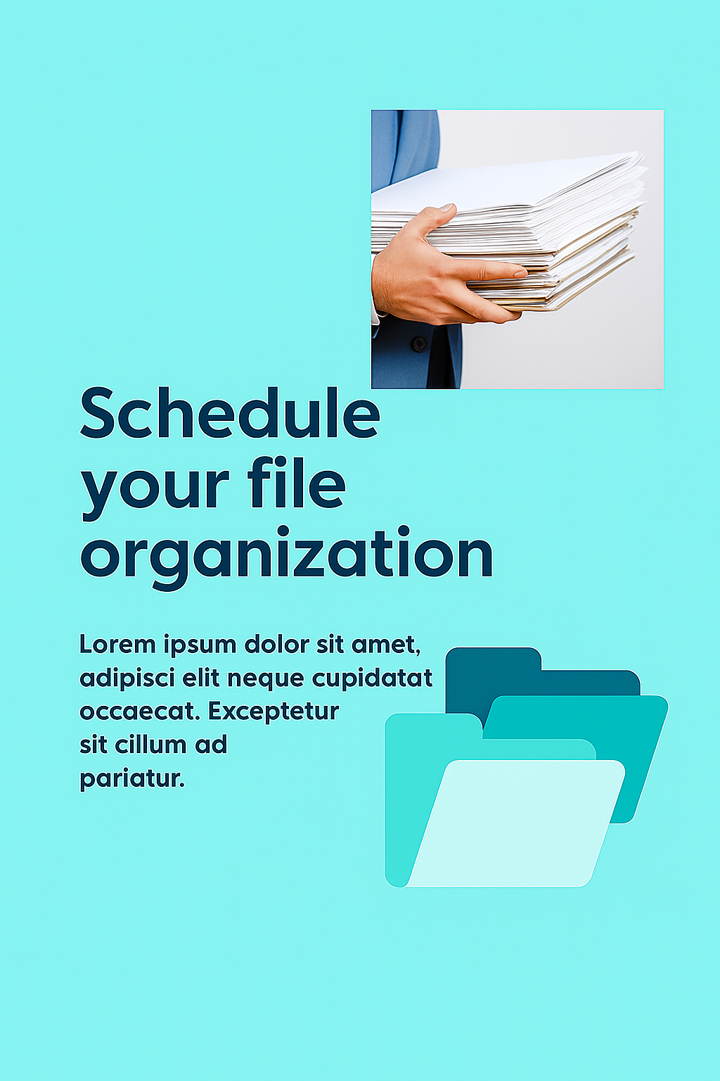 /Collection: /by davooda/Type: PNG/A contemporary promotional graphic featuring a person holding documents, emphasizing the importance of file organization. Ideal for office management and productivity content.