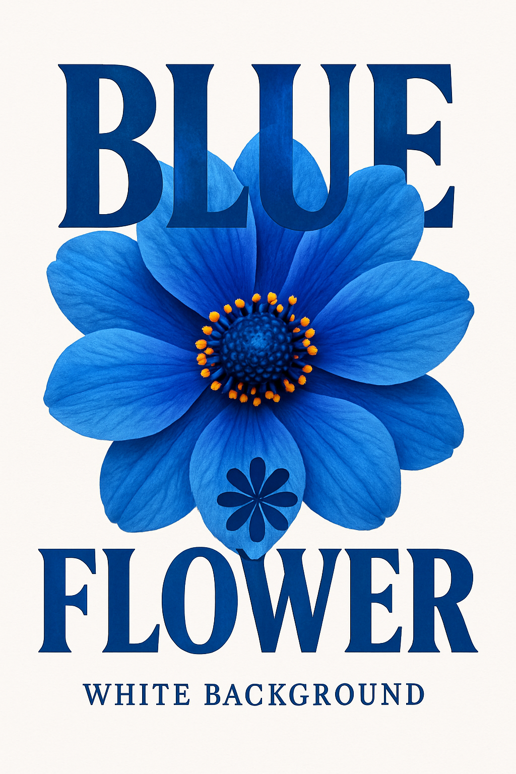 A striking graphic featuring a blue flower prominently displayed against a clean white background, ideal for floral-themed promotions or artwork.