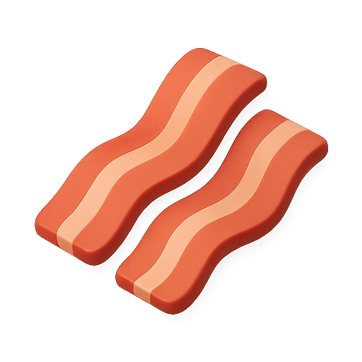 A stylized, realistic illustration of two bacon slices, showcasing vibrant colors and smooth design. Ideal for food-related content, advertising, or branding.