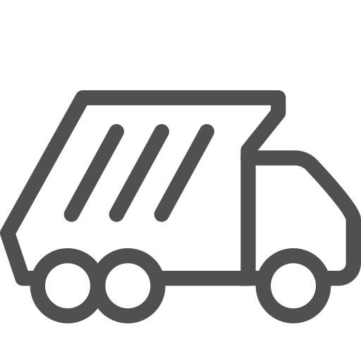 outline simple icon: dump truck, environment, garbage truck, recycling, sanitation