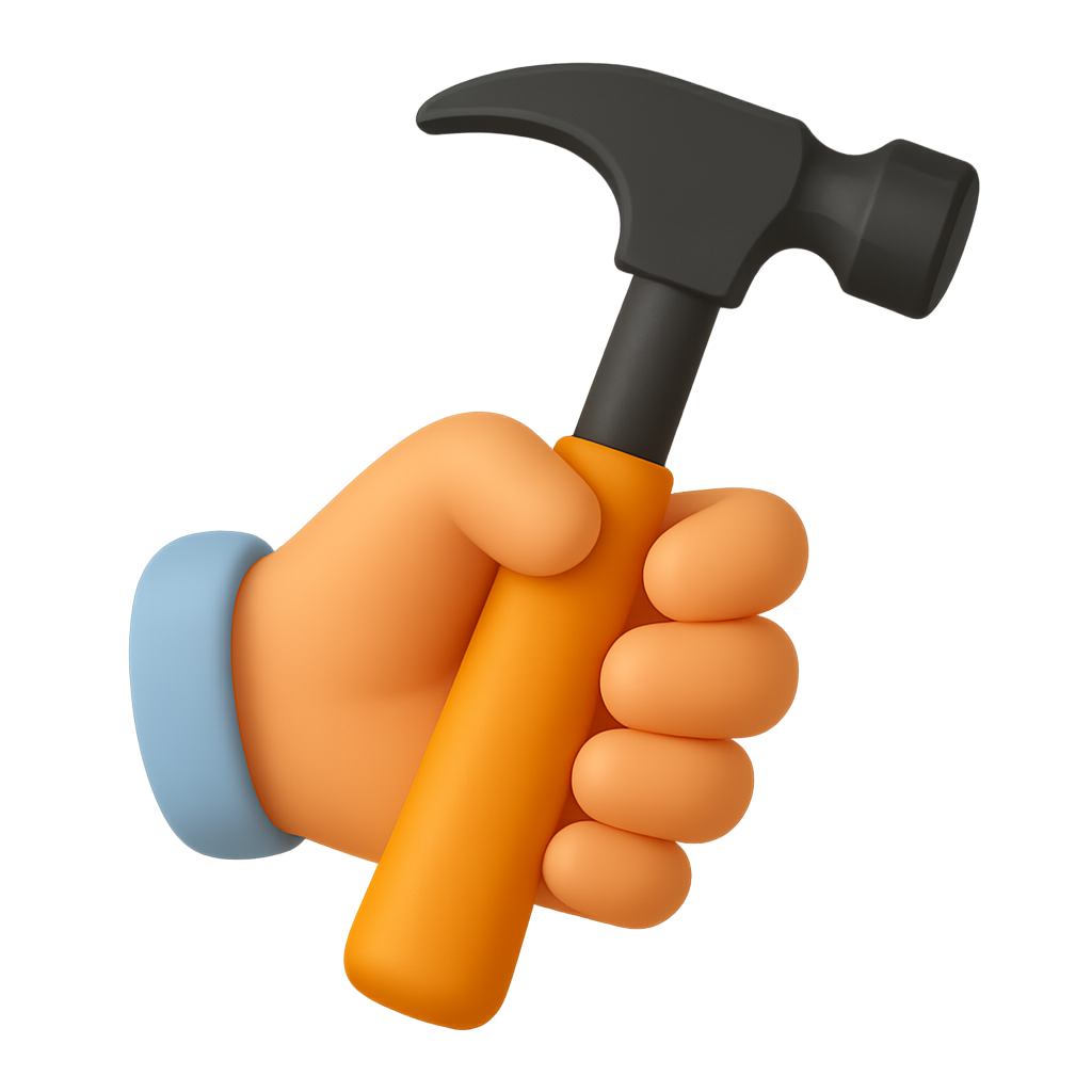 Stylized 3D Hammer Icon in Hand with Isometric View