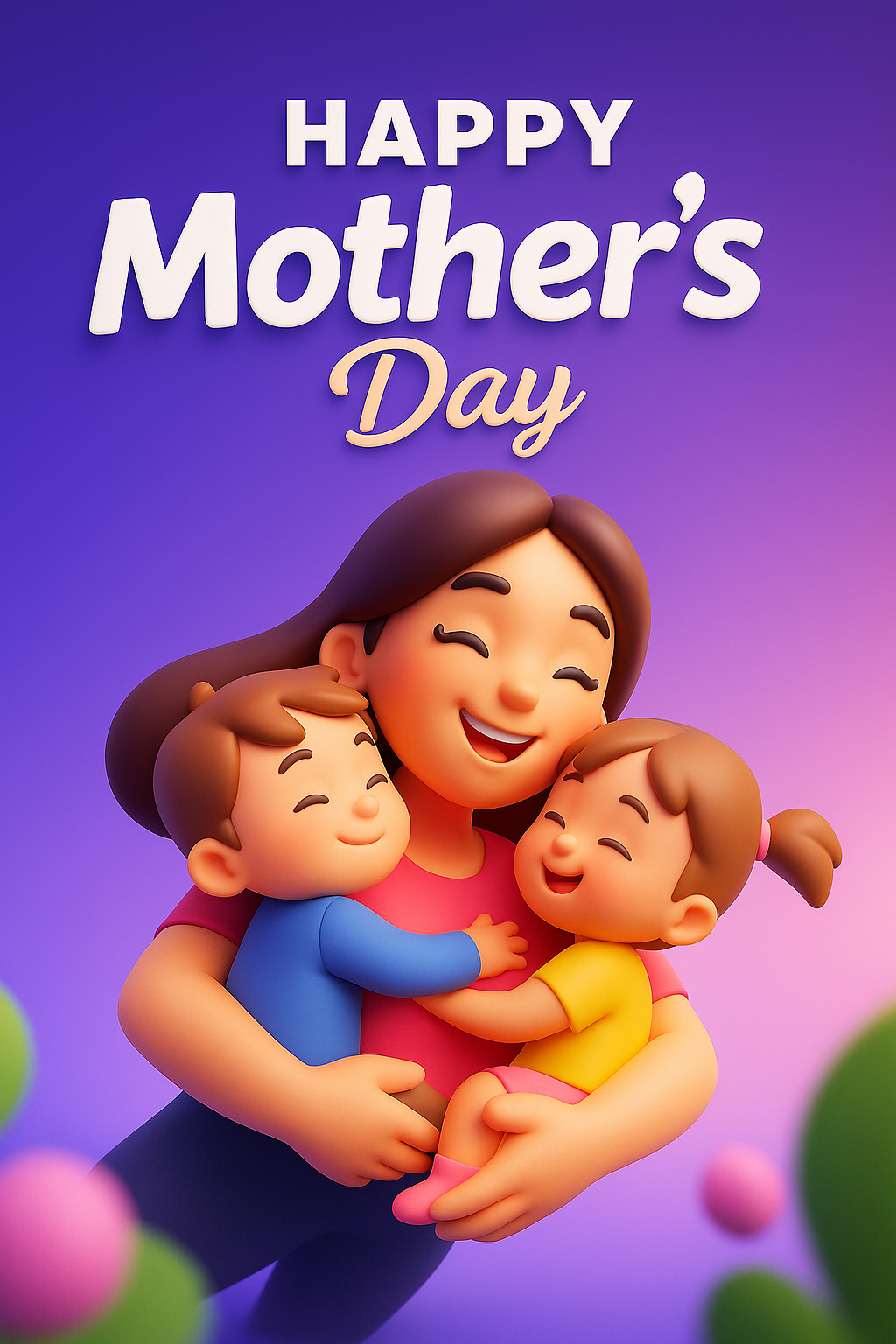 Vibrant Happy Mother's Day 3D Illustration with Mother and Children