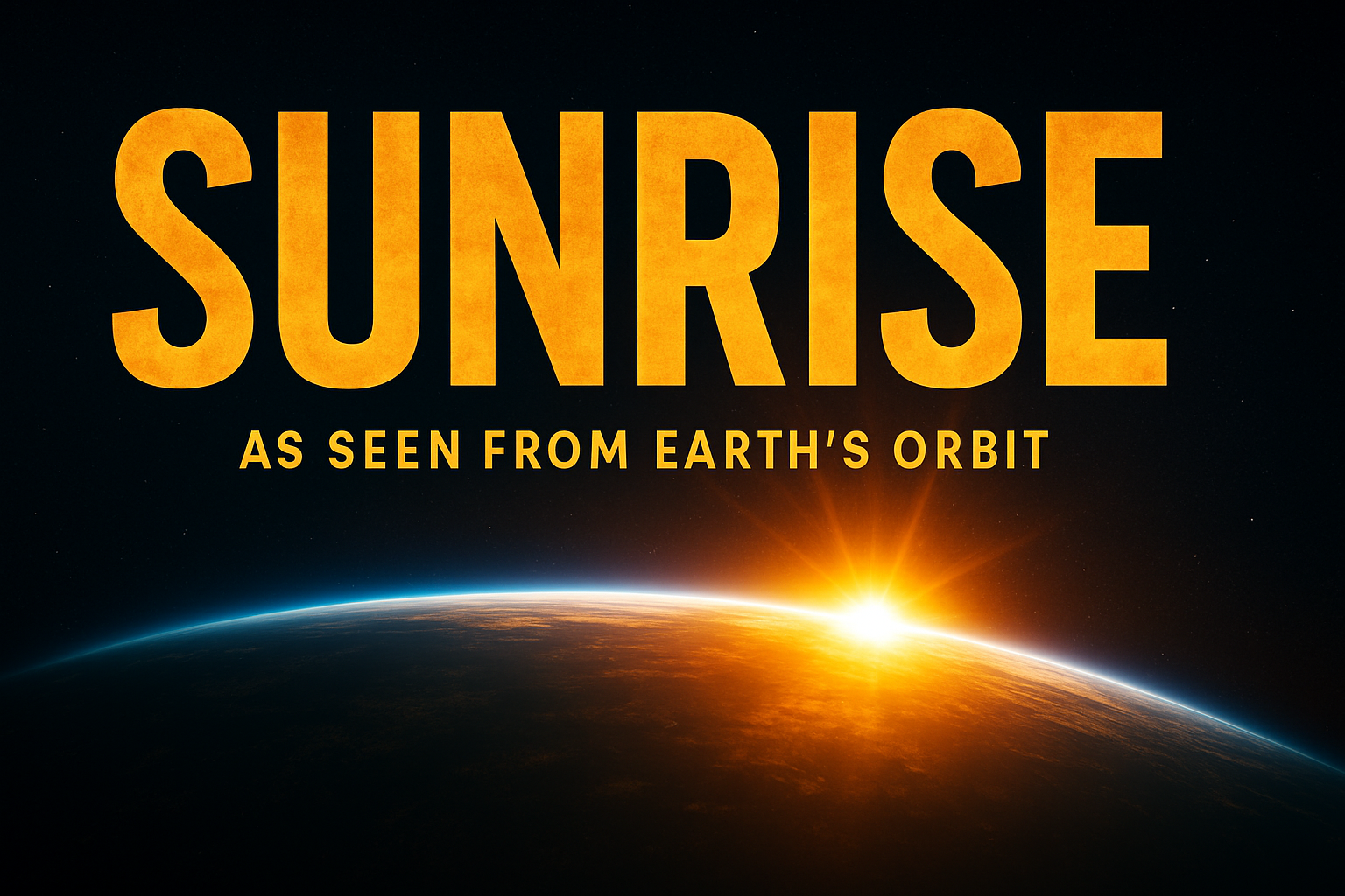 An awe-inspiring graphic showcasing a sunrise as viewed from Earth's orbit, featuring vibrant colors and bold typography. Ideal for space-themed content or educational materials.