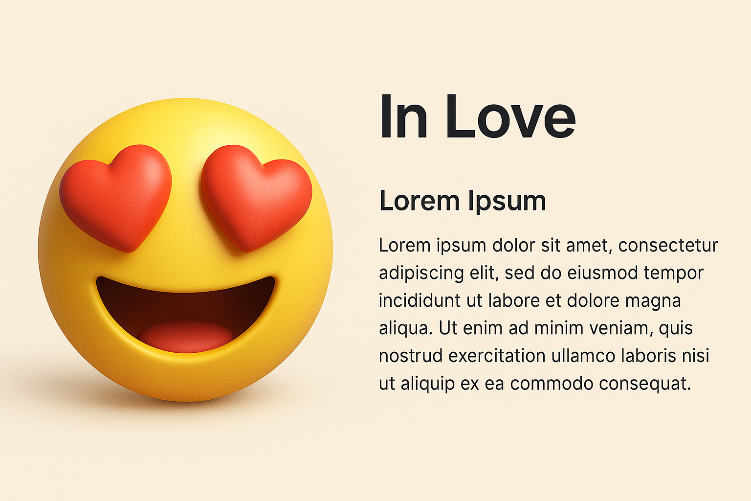 Playful 3D emoji with heart eyes accompanied by text, perfect for social media or blog posts about love and relationships, featuring a soft color palette.