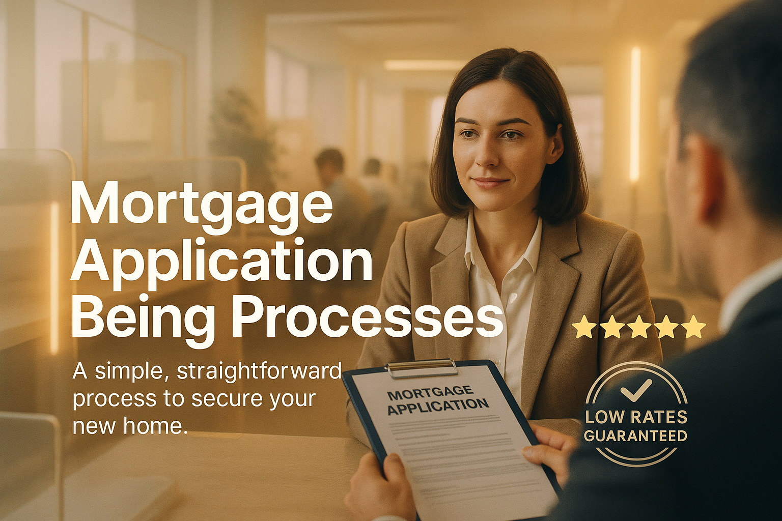 /Collection: /by davooda/Type: PNG/A professional setting showcasing a mortgage application consultation, featuring a confident individual presenting a mortgage application form. Ideal for financial services marketing.