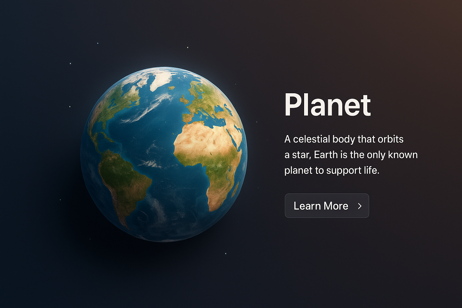 /Collection: /by davooda/Type: PNG/A detailed 3D rendering of Earth viewed from space, featuring a dark gradient background. The scene includes informative text and a call-to-action button, creating an engaging visual layout.