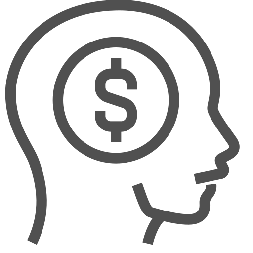 outline simple icon: currency consideration, economic psychology, financial thinking, investment strategy, monetary decision