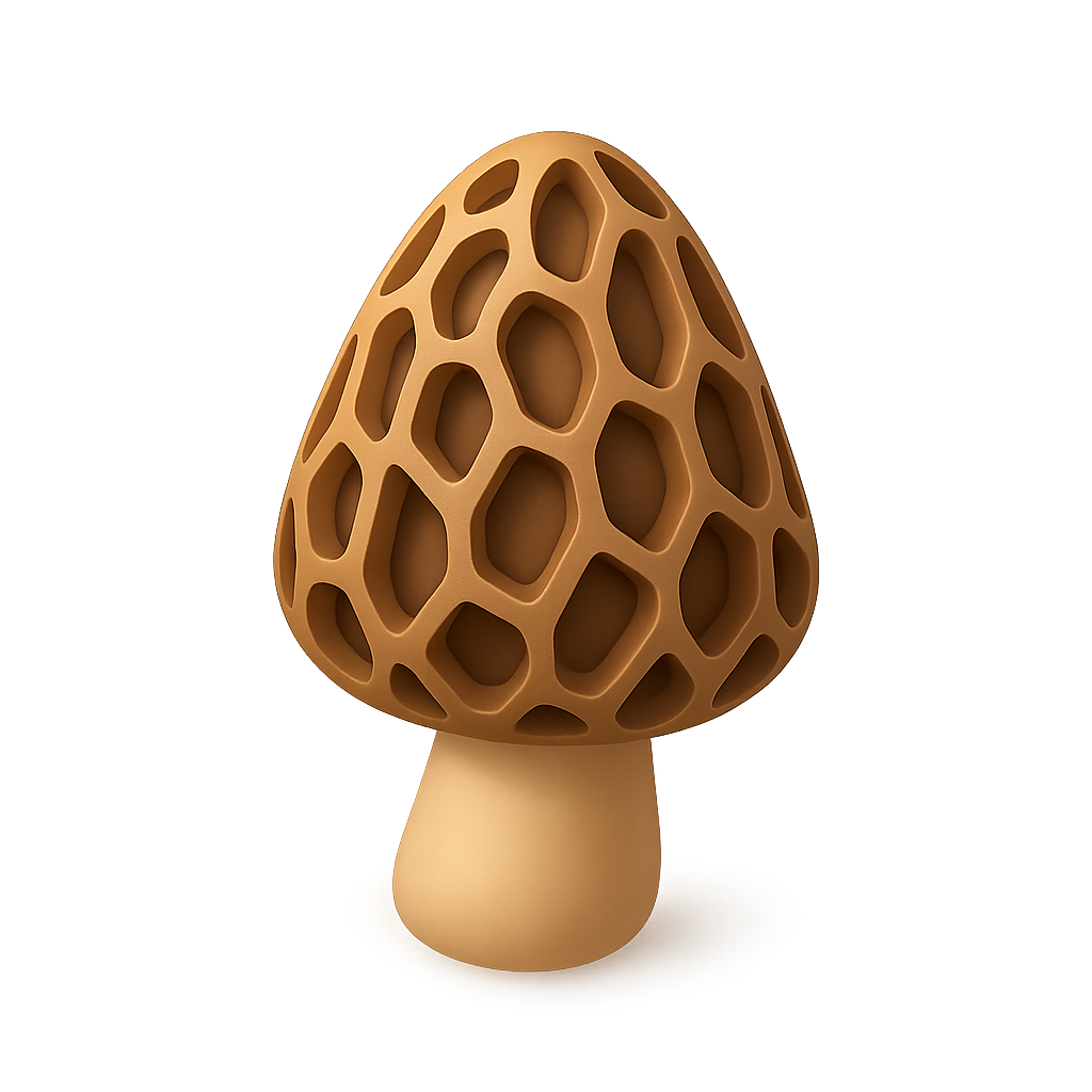 Stylized 3D Morel Mushroom Icon with Honeycomb Texture