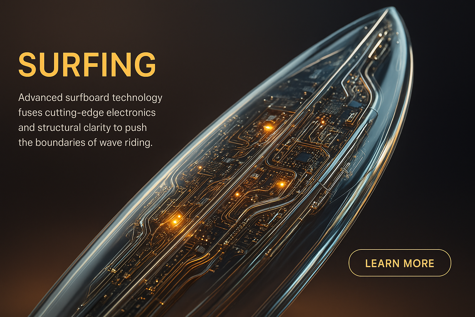 /Collection: /by davooda/Type: PNG/An extreme close-up of a high-tech surfboard featuring intricate electronic components, glowing micro-LEDs, and a glass-like surface. The design highlights a blend of elegance and advanced technology.