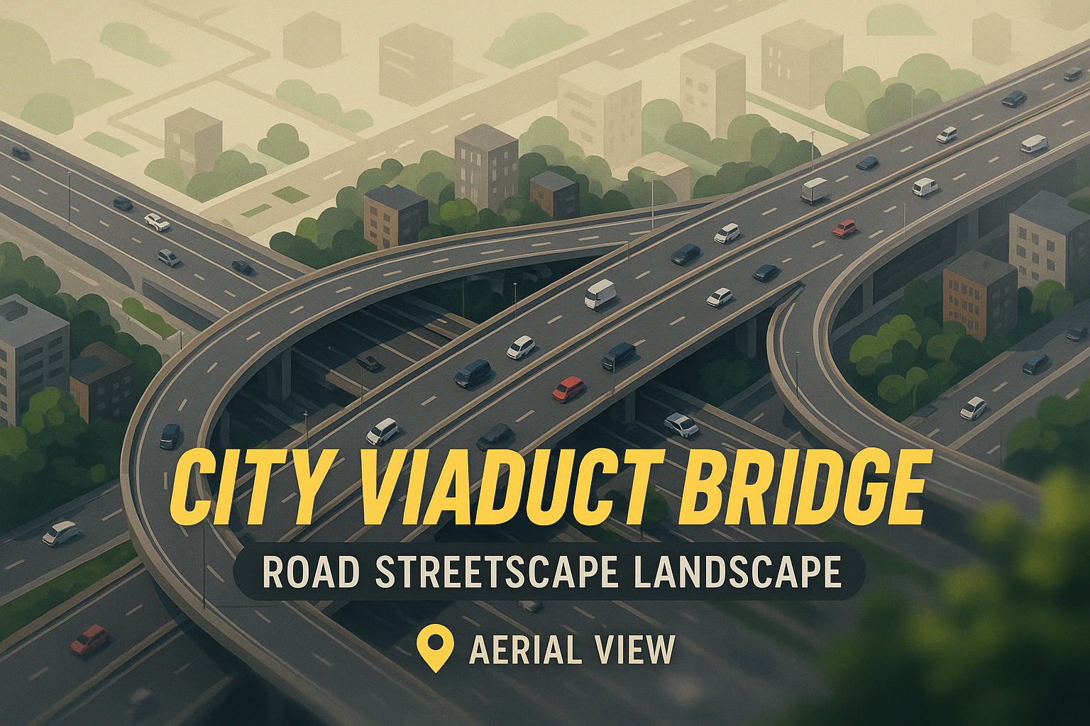 /Collection: /by davooda/Type: PNG/Illustrative aerial view of a city viaduct bridge showcasing a complex road network. The design emphasizes urban infrastructure and is suitable for urban planning or transportation discussions.