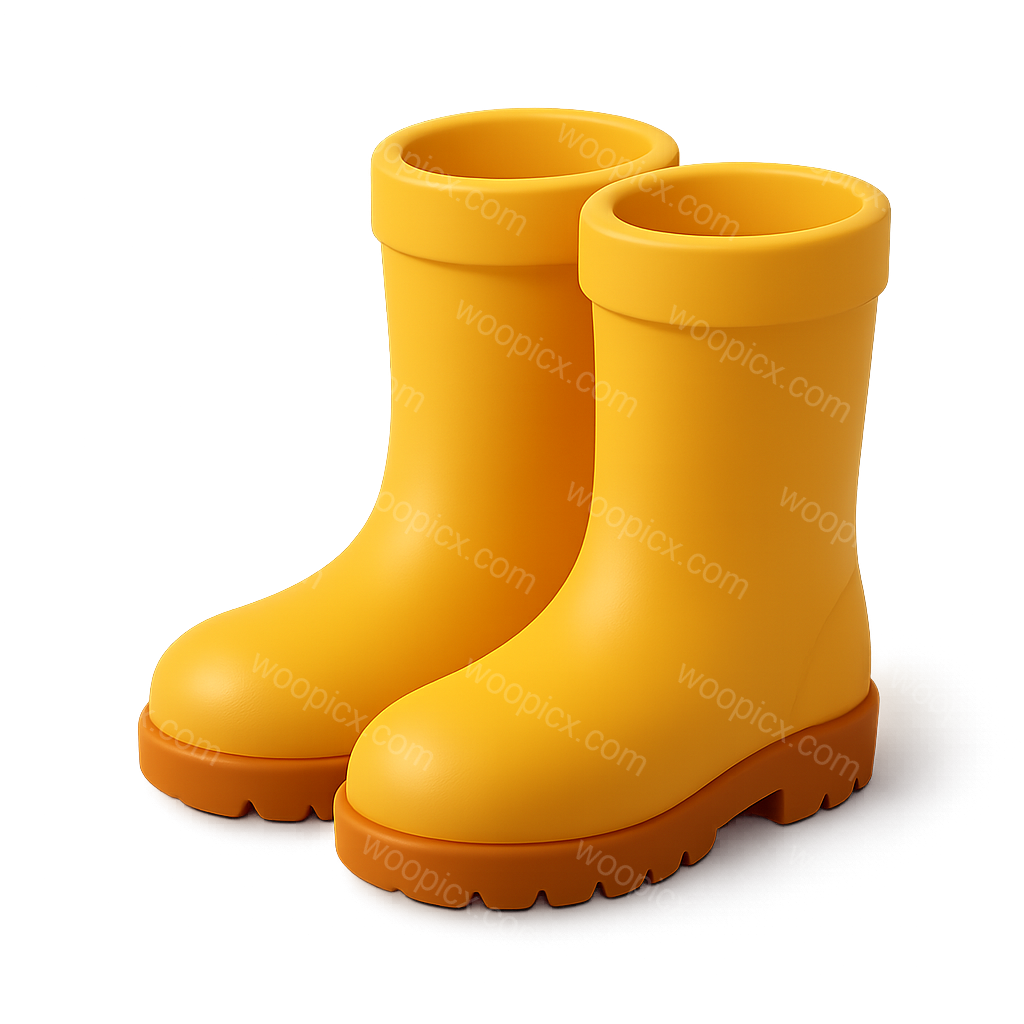 /Premium/Collection: /by davooda/Type: PNG/A pair of vibrant yellow rain boots displayed in a three-quarter view. The boots have a smooth, glossy finish, featuring a chunky sole and a comfortable cuff.