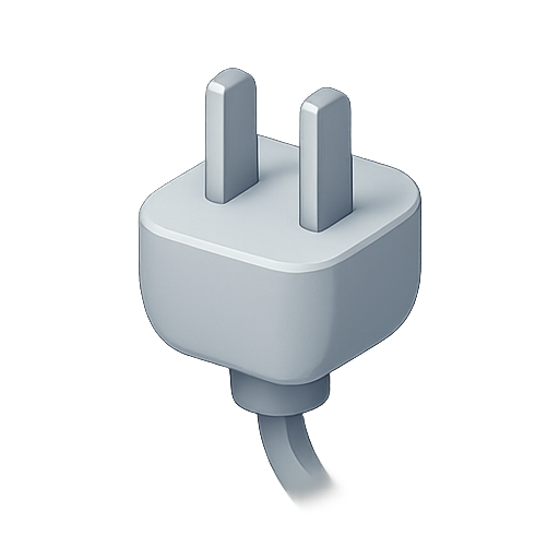 A detailed and realistic illustration of an electric plug, designed for use in digital media and technology-related contexts. Ideal for icons, infographics, and educational materials.