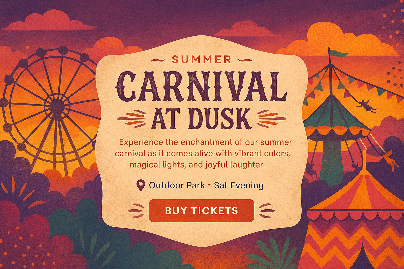 Colorful Summer Carnival at Dusk with Vibrant Elements