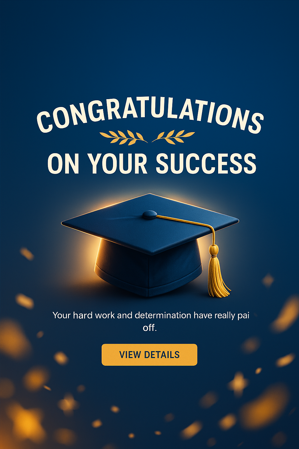 /Collection: /by davooda/Type: PNG/This is a digital graphic celebrating academic success, featuring a graduation cap with a dark blue background. It's designed for social media or announcement purposes.