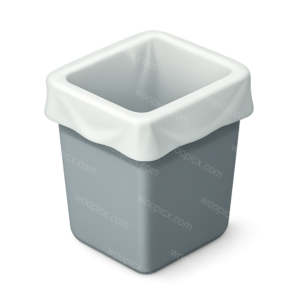 /Premium/Collection: /by davooda/Type: PNG/A three-dimensional waste basket with a white liner, presented in a three-quarter isometric view. The design emphasizes volume and depth with a smooth, modern aesthetic.