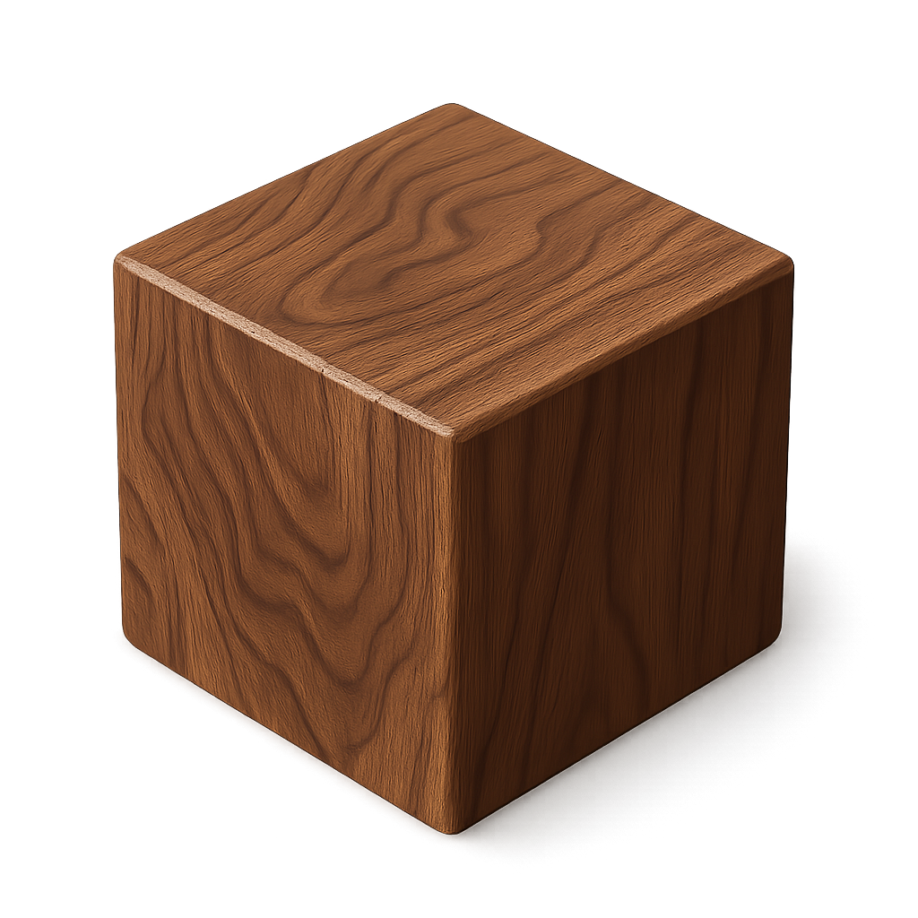 /Collection: /by davooda/Type: PNG/A detailed 3D representation of a walnut block, showcasing its rich wood grain and texture. The icon features a clean, transparent background and is designed in a three-quarter view for a realistic appearance.