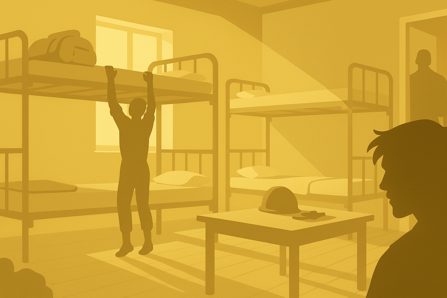Silhouetted Military Scene in a Dormitory Setting