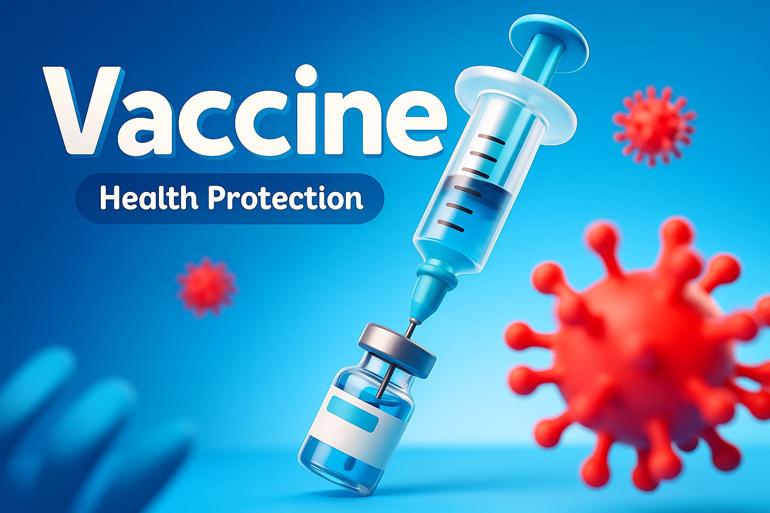 /Collection: /by davooda/Type: PNG/A vibrant 3D illustration featuring a vaccine syringe and vial against a smooth gradient background. The design emphasizes health protection with dynamic elements and engaging typography.