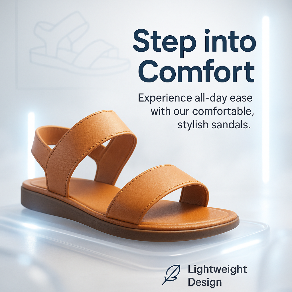 A visually appealing product display featuring a comfortable sandal, emphasizing its lightweight design. Ideal for e-commerce and fashion marketing.