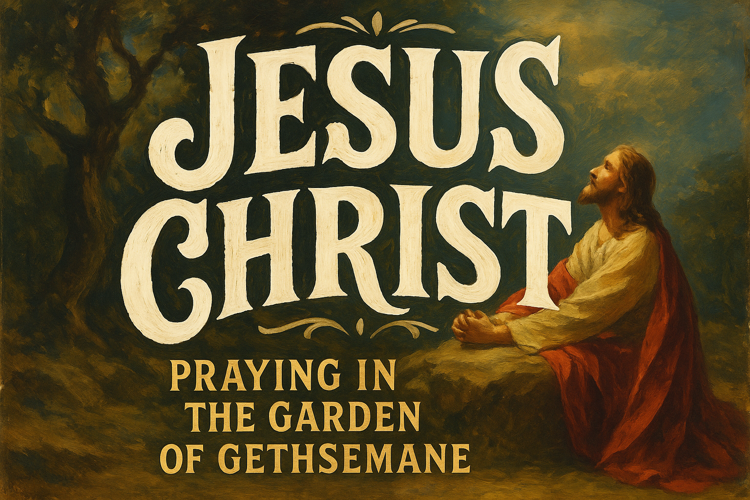 A classic religious painting illustrating Jesus Christ in prayer in the Garden of Gethsemane. The artwork features a serene color palette and an emotional theme, suitable for religious contexts.