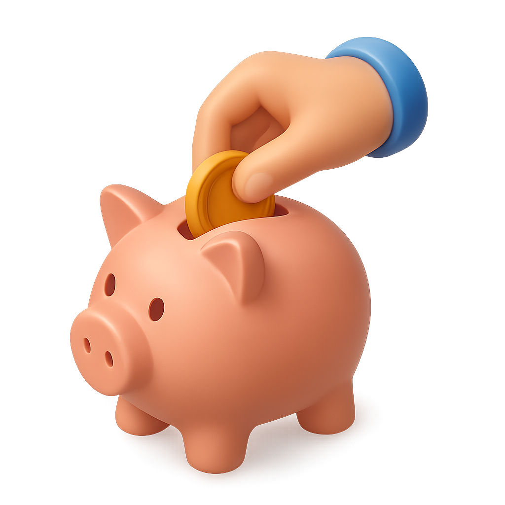 3D Icon of a Hand Inserting Coin into a Piggy Bank