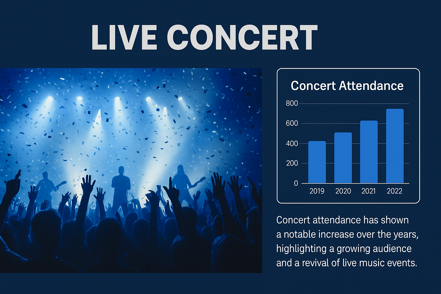 Informative infographic presenting live concert attendance trends over the years with visual data representation, ideal for music industry insights.