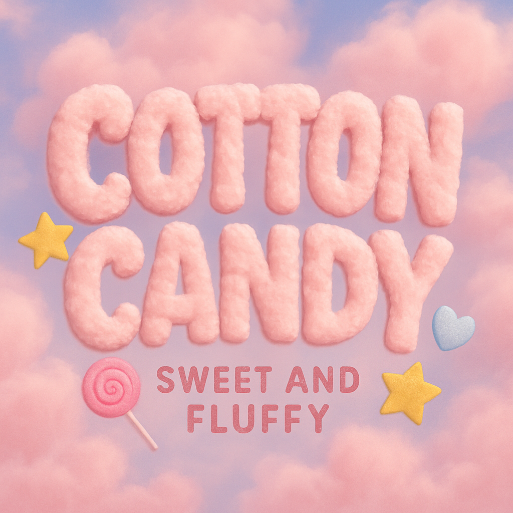 A whimsical graphic featuring fluffy cotton candy text against a pastel cloud background, ideal for sweet treat promotions or children's events.
