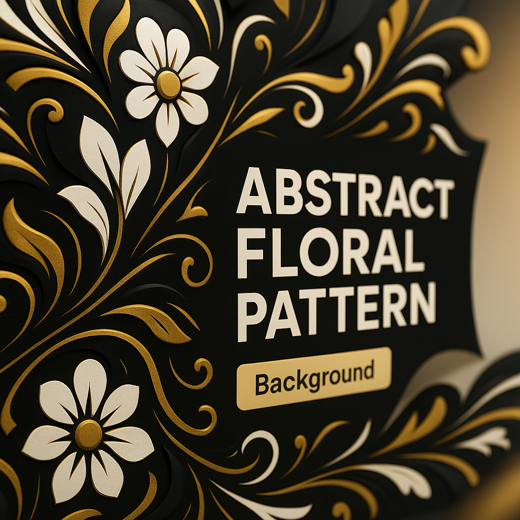 Elegant Abstract Floral Design in Black, Gold, and White