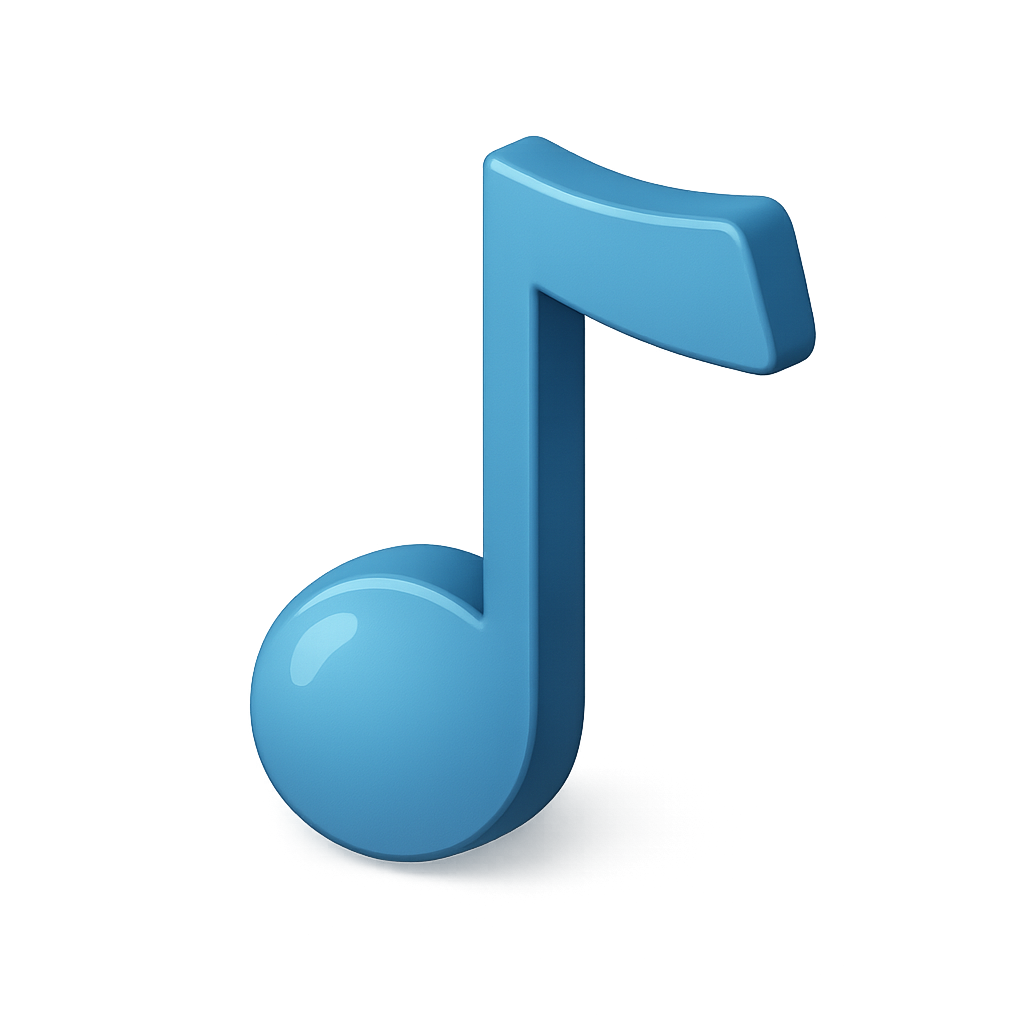 Stylized 3D Blue Musical Notes Icon with Isometric Design