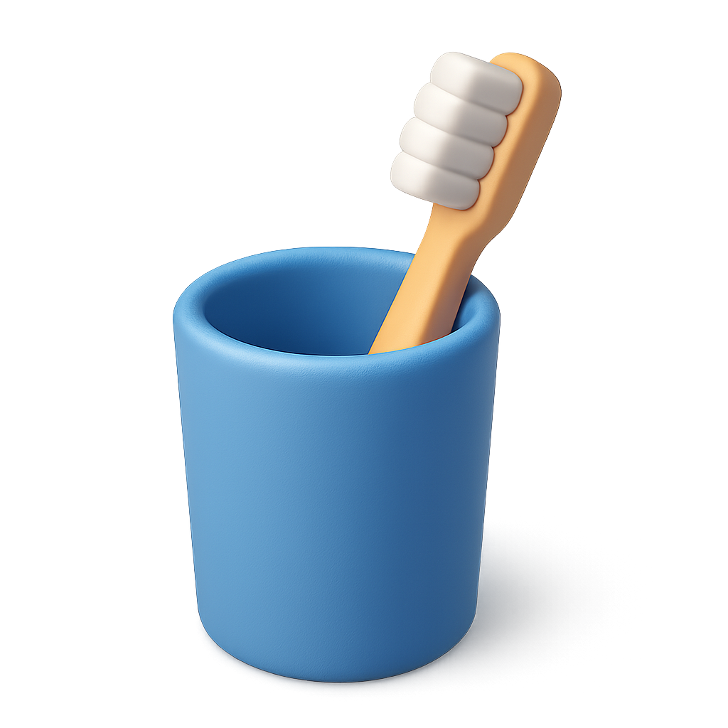 /Collection: /by davooda/Type: PNG/A visually appealing 3D icon of a blue toothbrush holder with a toothbrush. The design features a three-quarter view, emphasizing its volumetric shape against a soft gradient background.