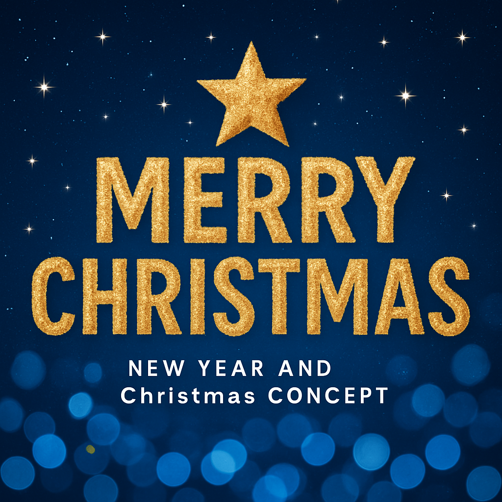 A vibrant and festive greeting card design featuring glittery typography and a star, ideal for holiday celebrations and seasonal marketing.